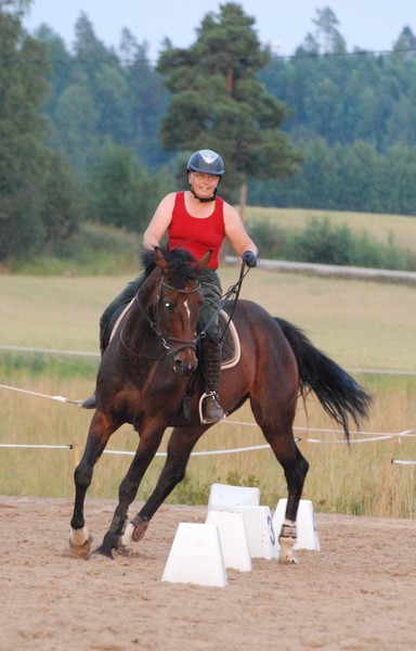Keskiviikkoiltana pidettiin Hästbackassa pienet yllätysjuhlat Ekin koulukurssin päätteeksi seuramme puheenjohtajalle. Ohjelmaakin oli, puheita ei pidetty, mutta kesän herkut tarjoiltiin tyylikkäästi auton lavalta ja tilaisuus huipentui kilpailussa ”No guts, just fun!”. Kisa käytiin 2 ratsastajan ja 1 hevosen joukkueilla. Joukkueita saatiin kokoon peräti yhdeksän ja finaali tiukkaakin tiukemmassa aikaluokassa käytiin joukkueiden Pilli-Annina-Eva M ja Karkki-Eva S-Emppa kesken. Annina ja Pilli, toinen ankkureista, voitti hiuksenhienosti Eva S:n Karkilla. Synttärisankarin joukkueen oli tyytyminen kolmanneksi viimeiseen sijaan, mutta lohdutukseksi saimme nähdä 2 miesratsastajaa, Harrin ja Retun debytoivan Saanan ja Ellin avustuksella, tuloksena kunniakas viimeinen sija, joka kyllä hyvinkin vastasi ylivoimaista voittoa kun suhteutetaan se ratsastuskertojen määrään... Kuvakooste 27.7.2011 |